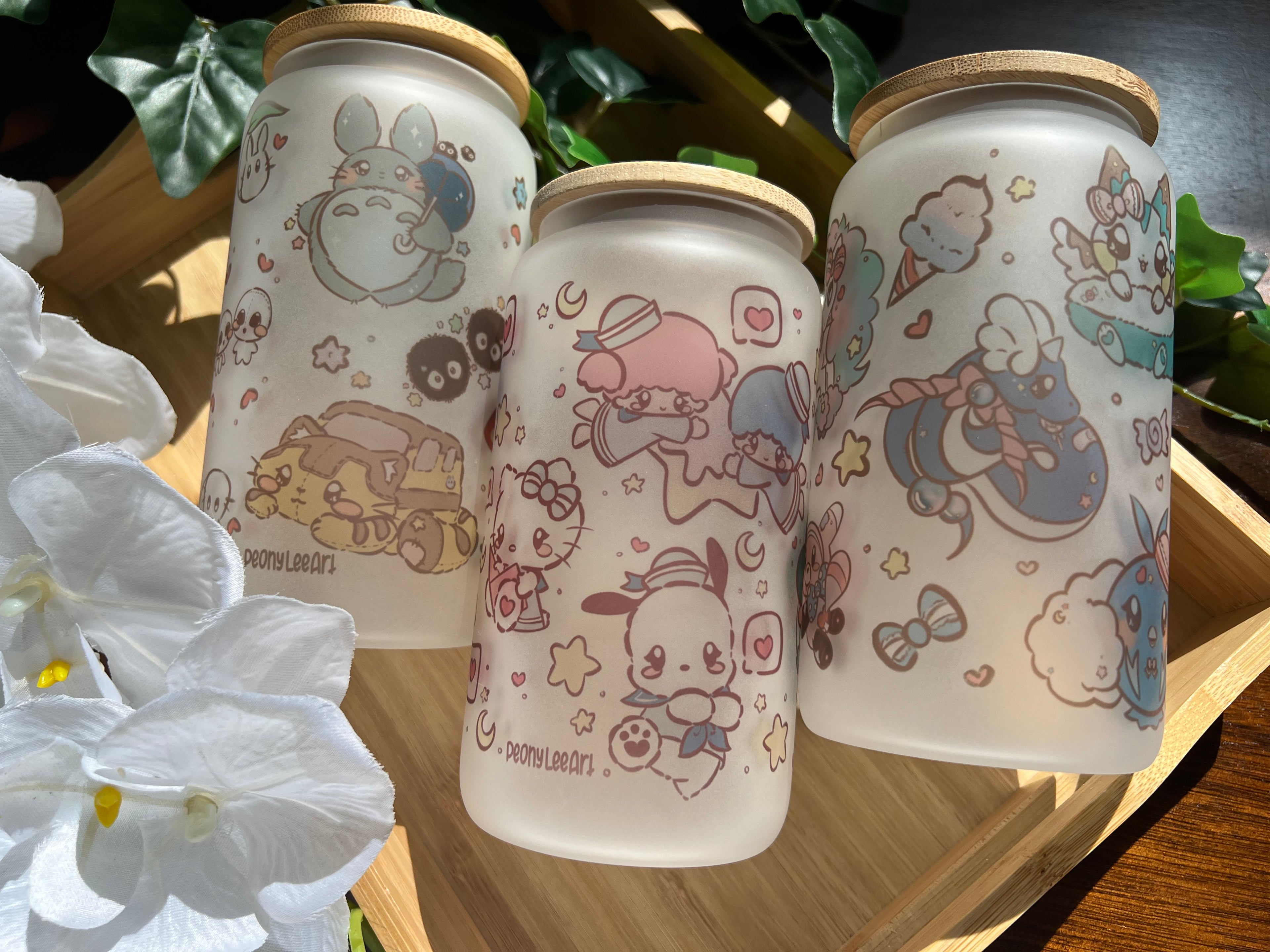 Studio Friends "Gods, Spirits & Cuties, Oh My!" 16oz Frosted Glass Tumbler with Glass Straw