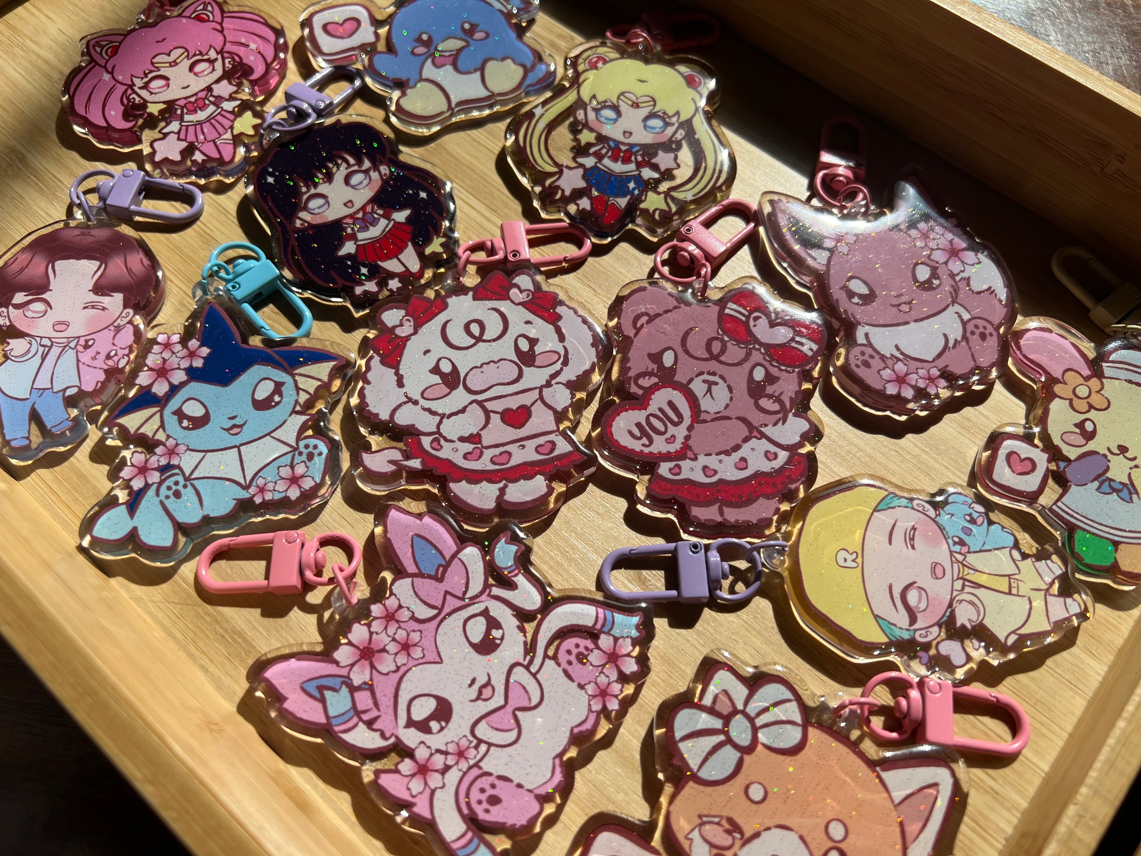 Demon Dog Pochi Jam Bread Double-Sided Glitter Keychain