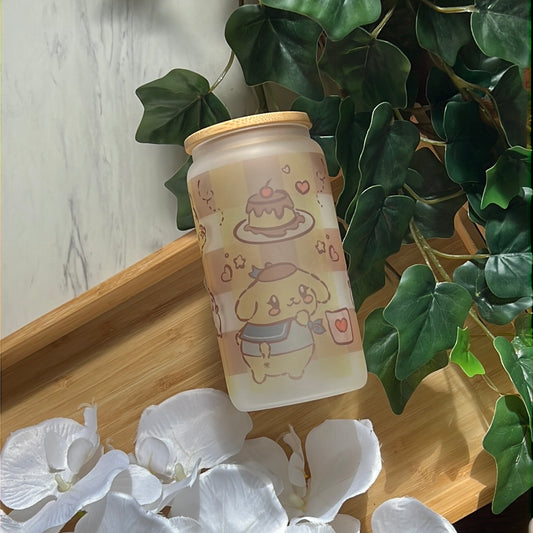 Honey Pudding Pom Pom Rin 16oz Frosted Glass Tumbler with Glass Straw