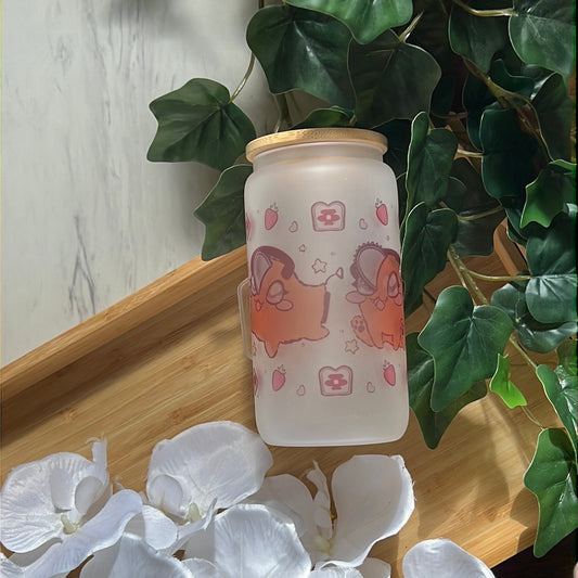 Chain Demon Pochi Dog 16oz Frosted Glass Tumbler with Glass Straw