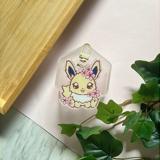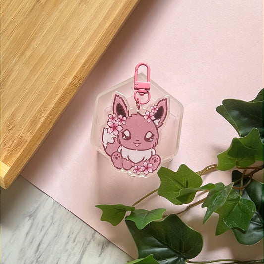 Cherry Blossoms Eevee Double-Sided Glitter Keychain