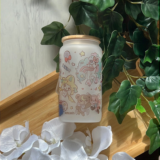 Pika Friends Pastel Candy Land 16oz Frosted Glass Tumbler with Glass Straw