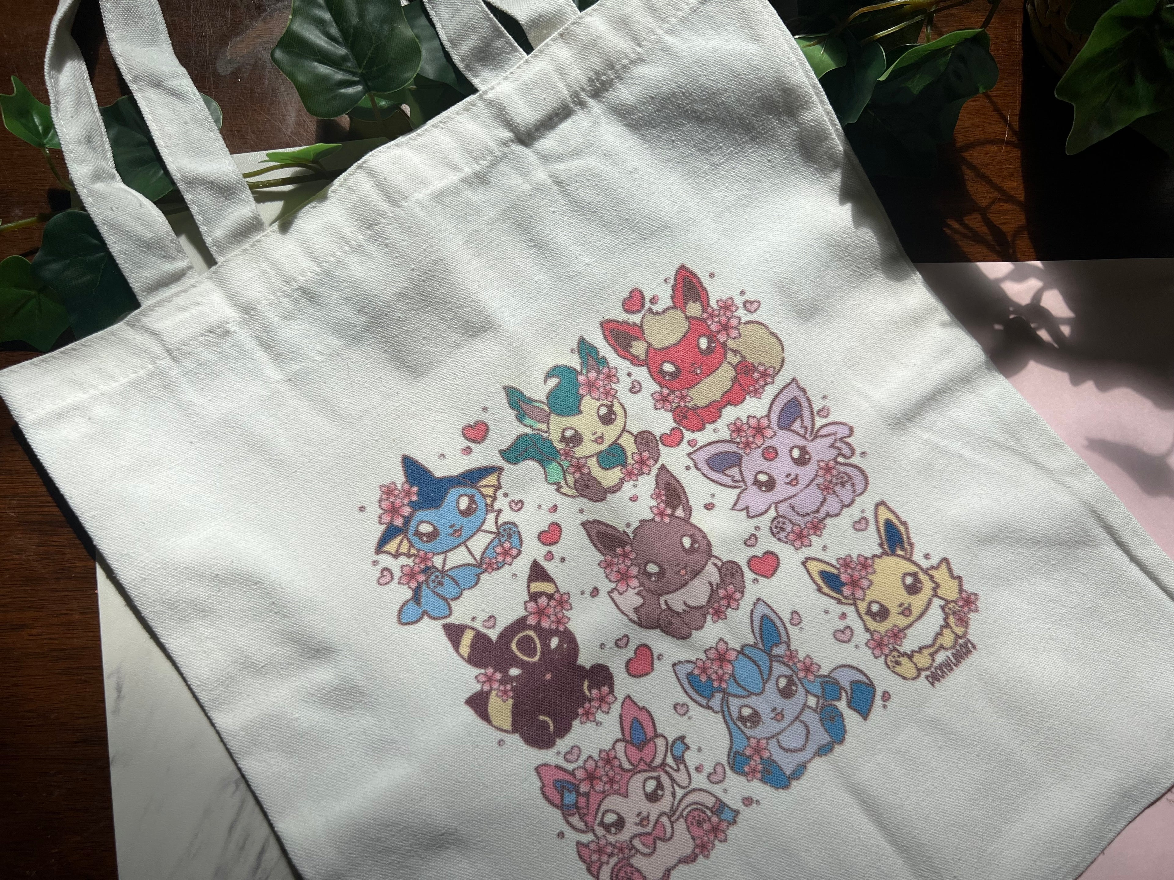 Cherry Blossom Eeveelutions White Canvas Tote Bag