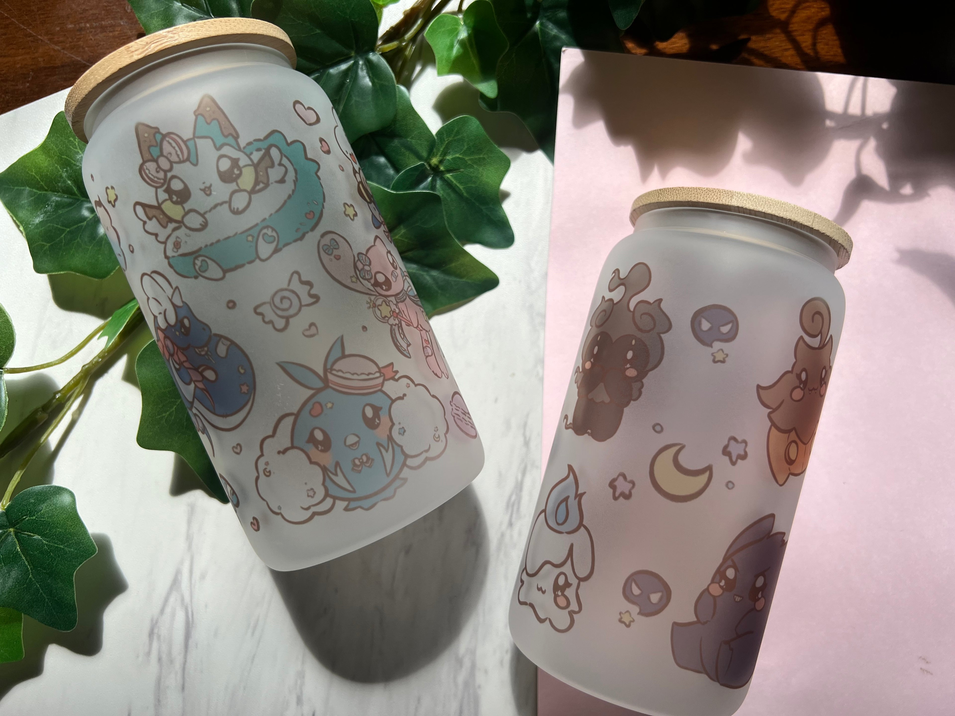 Elemental Eeveelutions 16oz Frosted Glass Tumbler with Glass Straw