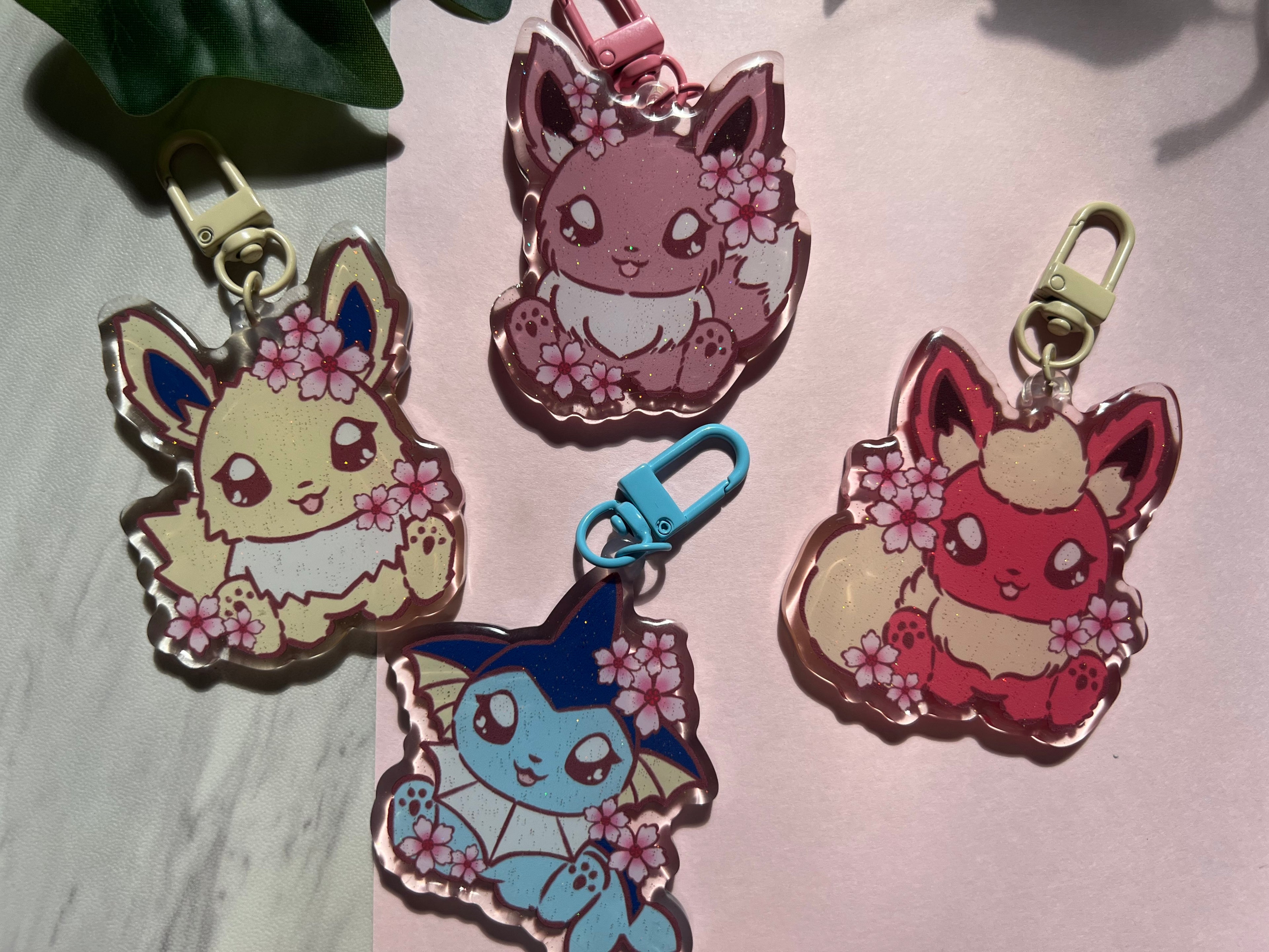 Cherry Blossoms Sylveon Double-Sided Glitter Keychain