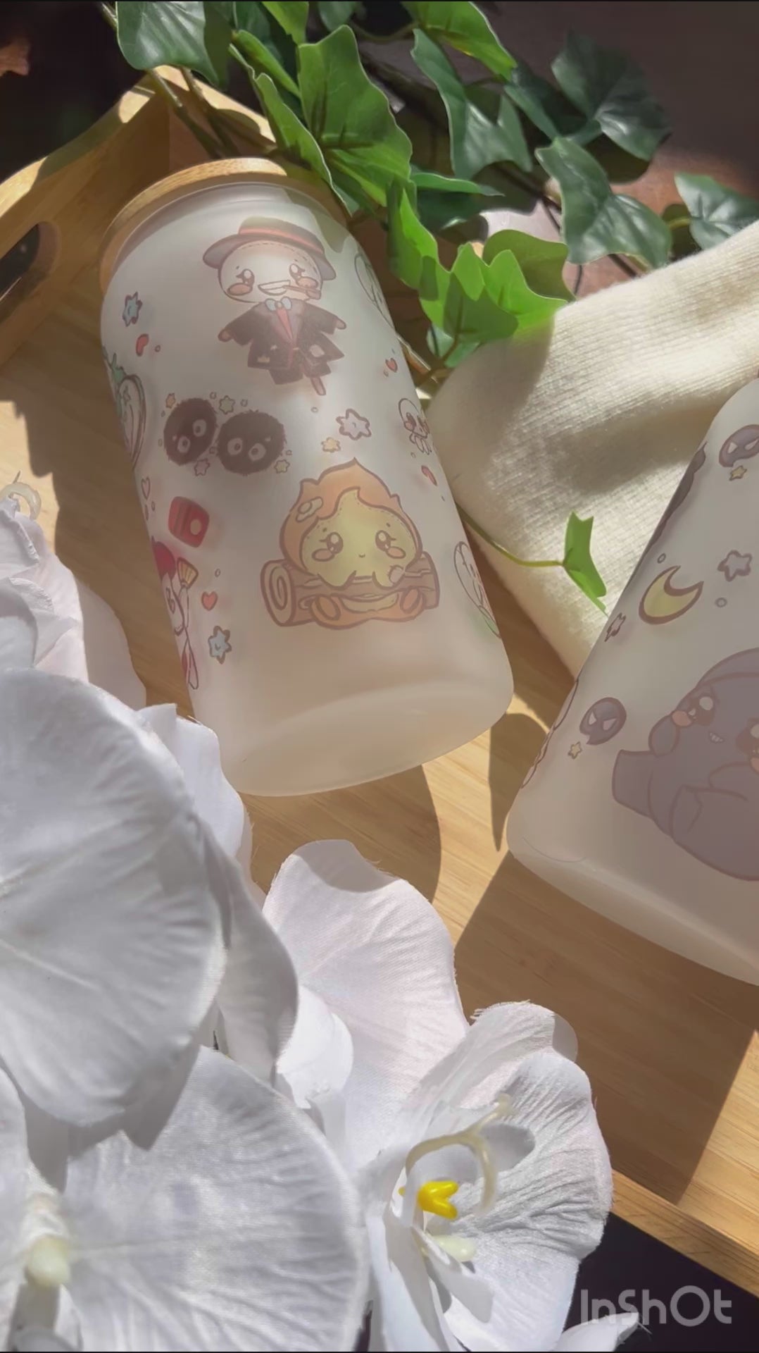 Info: Frosted glass cup with a bamboo lid and glass straw. These cups are individually hand printed in our studio using a heated element and special inks. A silicone ring on the lid ensures a snug and comfortable, spill-proof fitment. Glass will be hot to the touch if using for hot drinks.