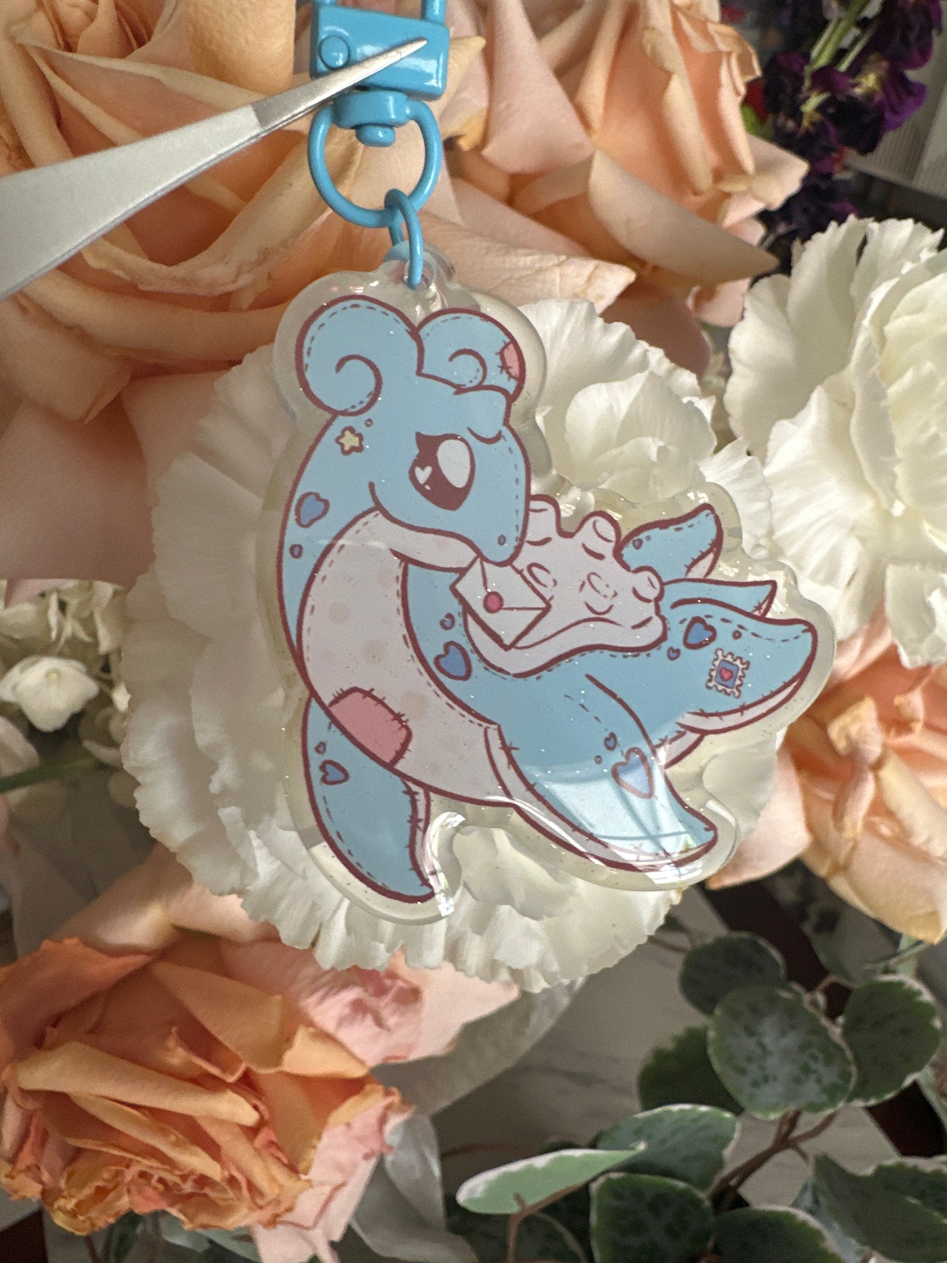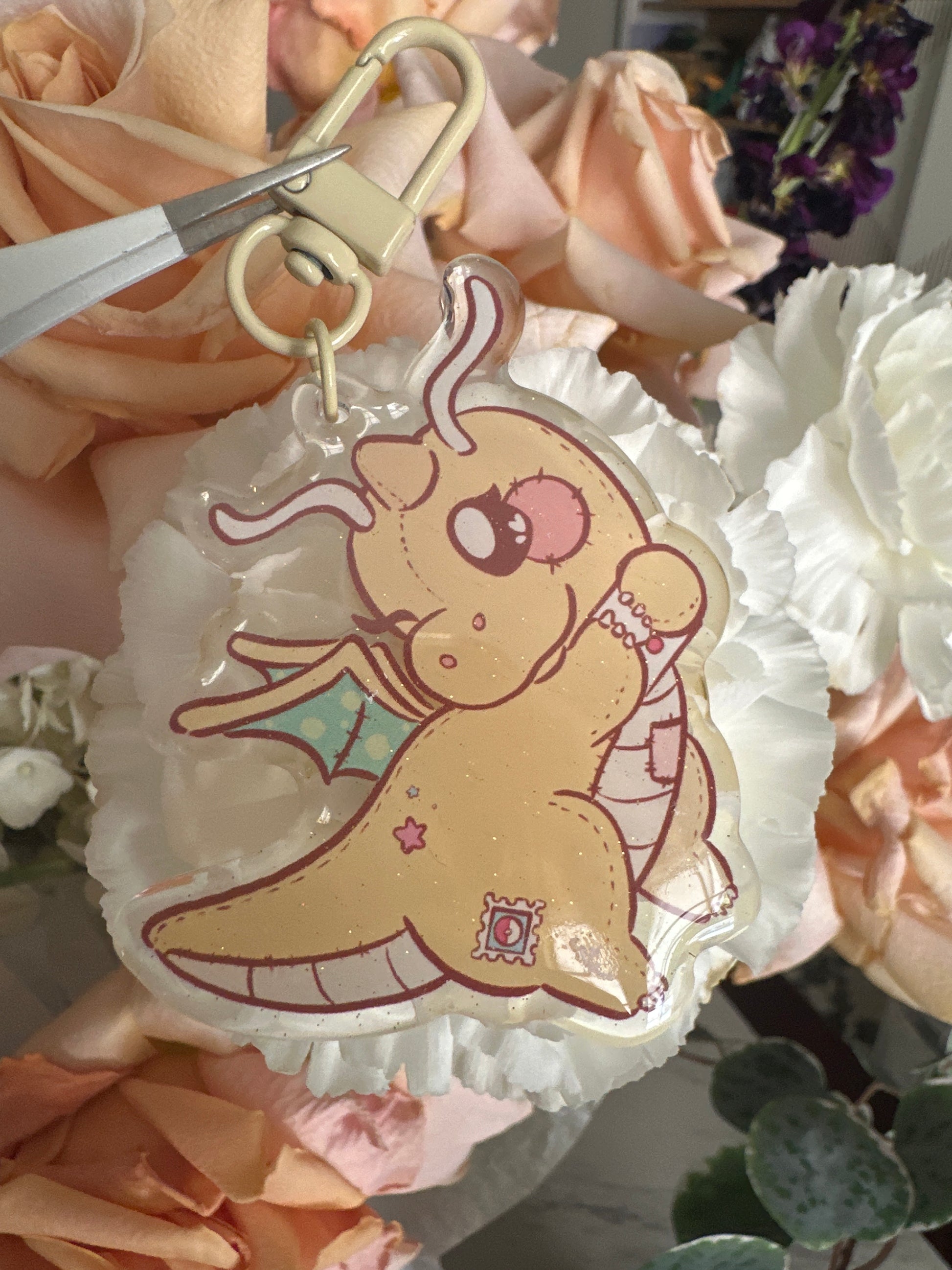 Info: Double-sided acrylic keychain with glitter epoxy doming for a sparkly finish. Comes with a yellow clasp.