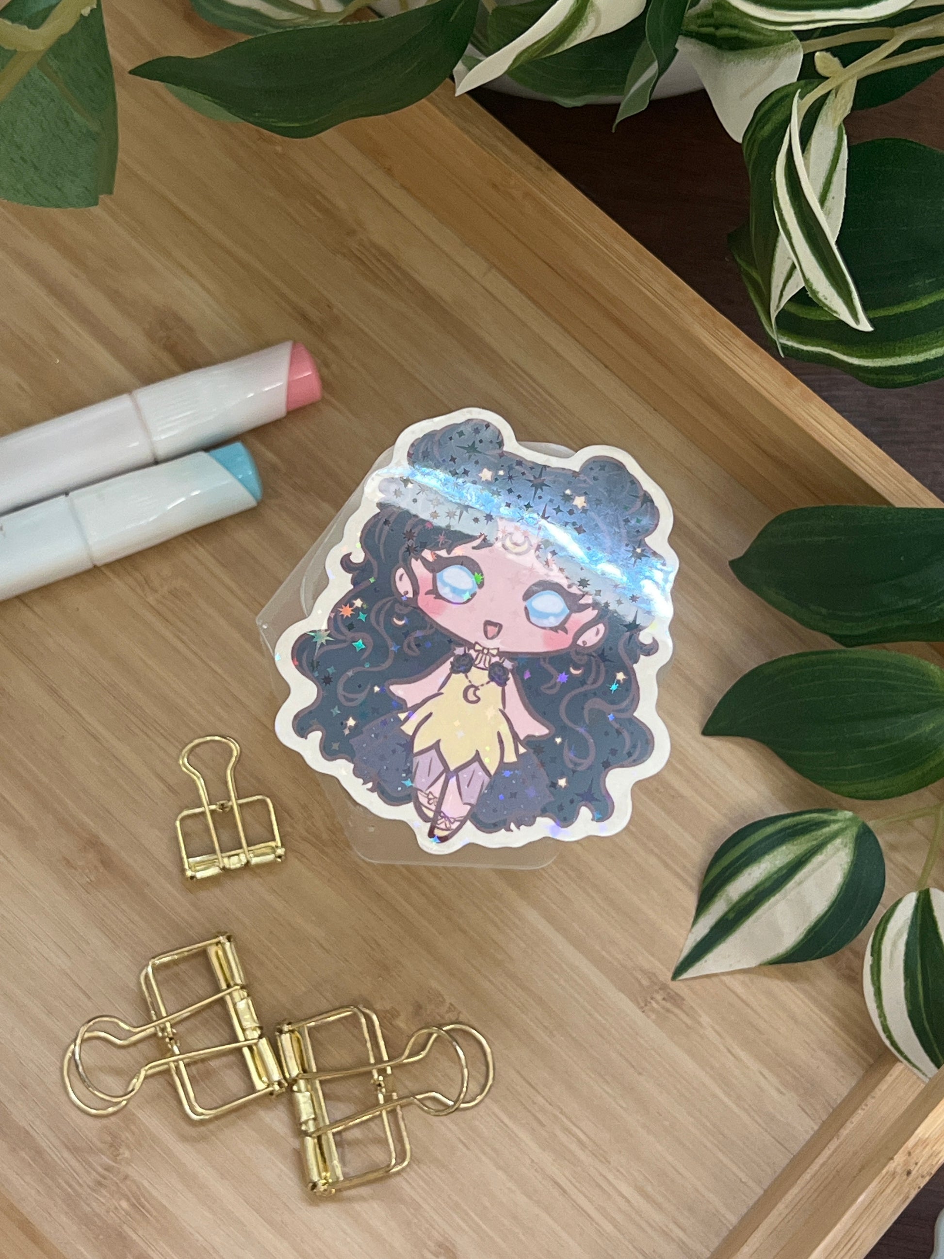 Info: Artwork is printed on weatherproof matte sticker paper and protected with holographic laminate for a scratch-resistant and sparkly finish.