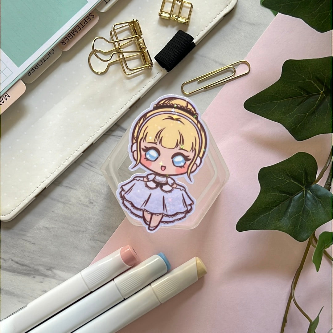 Info: Artwork is printed on weatherproof matte sticker paper and protected with holographic laminate for a scratch-resistant and sparkly finish.