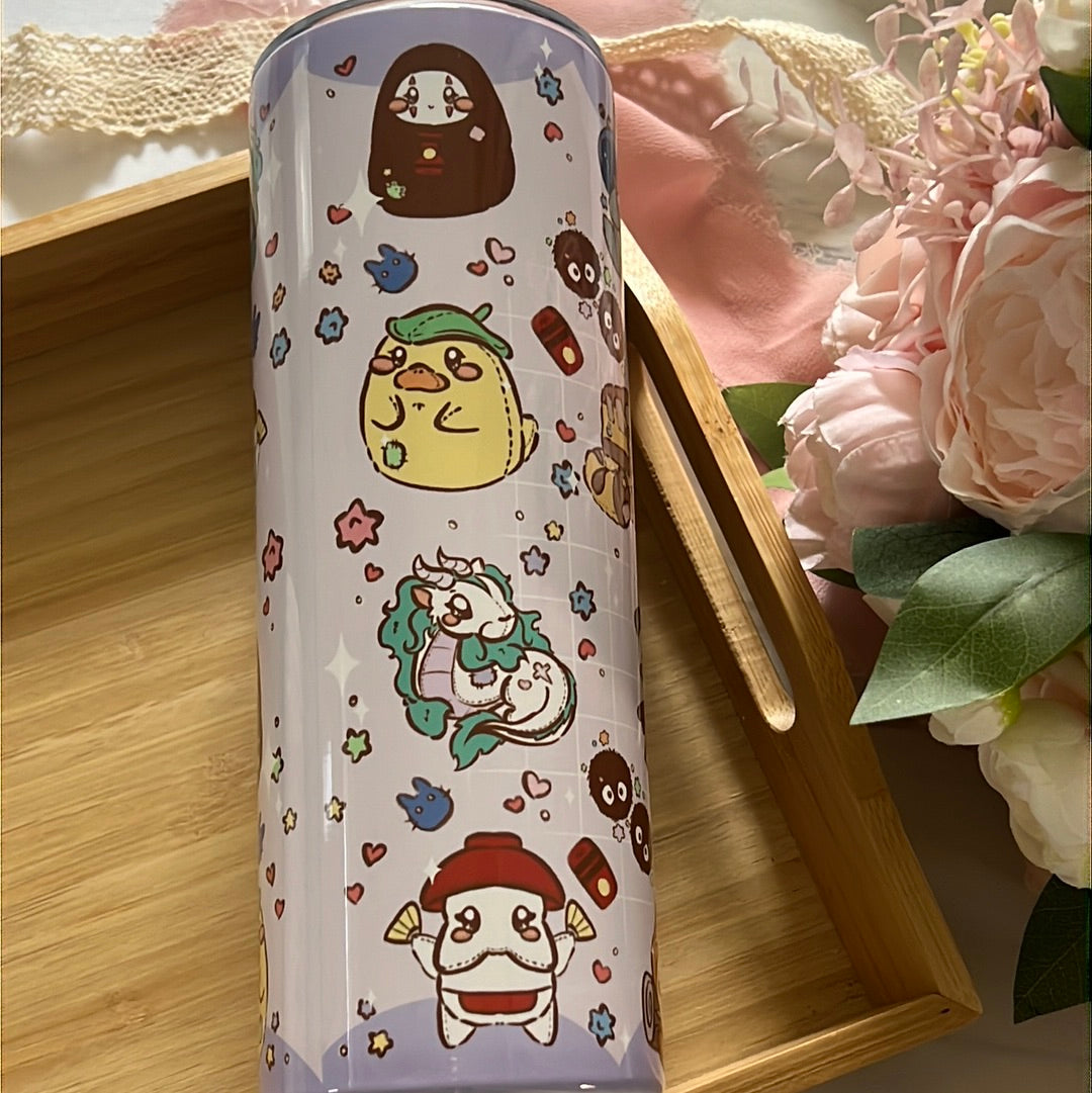 Info: These stainless steel tumblers are individually hand printed in our studio using a heated element and special inks. It is double-wall insulated to help keep in heat, and has a silicon anti-slip base. Product comes with a splash-proof lid, metal straw, and straw cleaning brush.