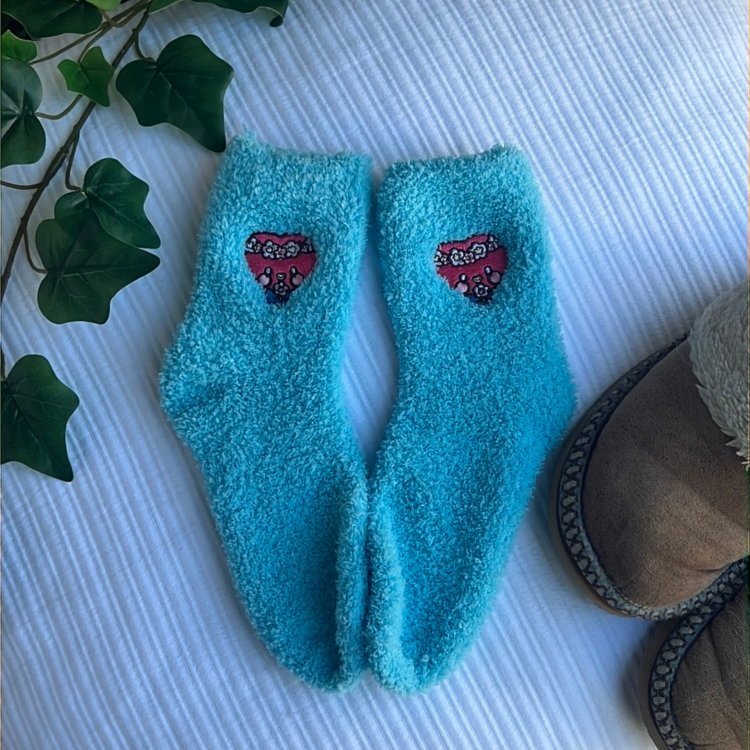Keep your feet cozy and warm with cute BT21 embroidered fuzzy socks! These super soft and super cute footwear make everyday a lounge day!