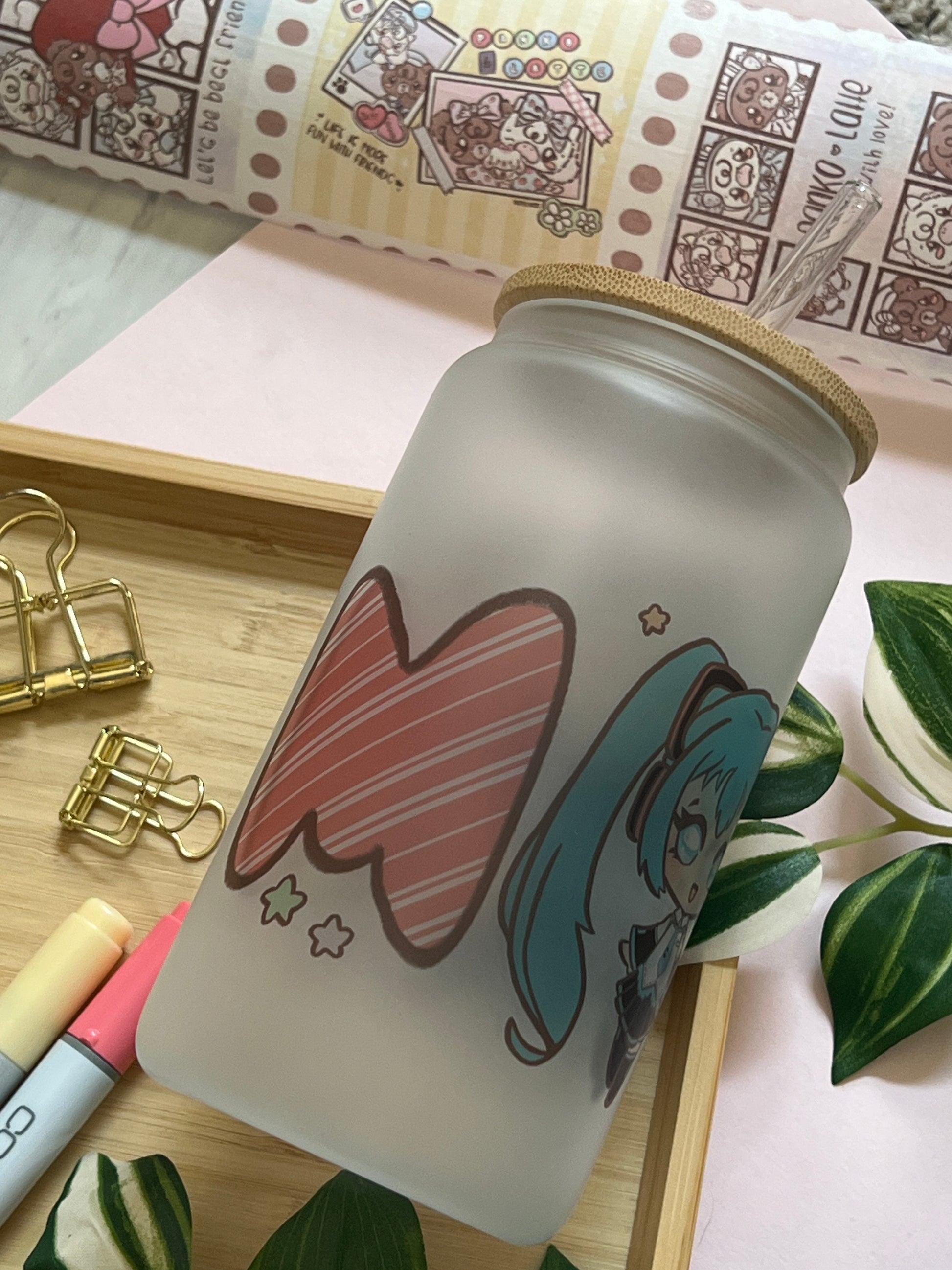 Vocaloid Pop Star 16oz Frosted Glass Tumbler with Glass Straw
